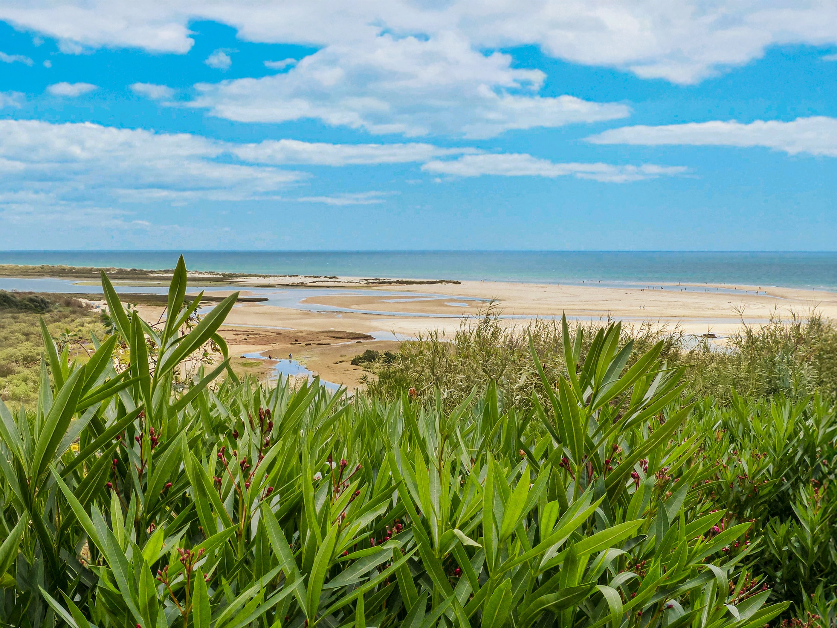 Non-smoking double room on the first floor, bright and welcoming, with a bedroom window overlooking the garden and a private bathroom with all comforts, featuring a window with a view of the Ria Formosa. Included amenities: